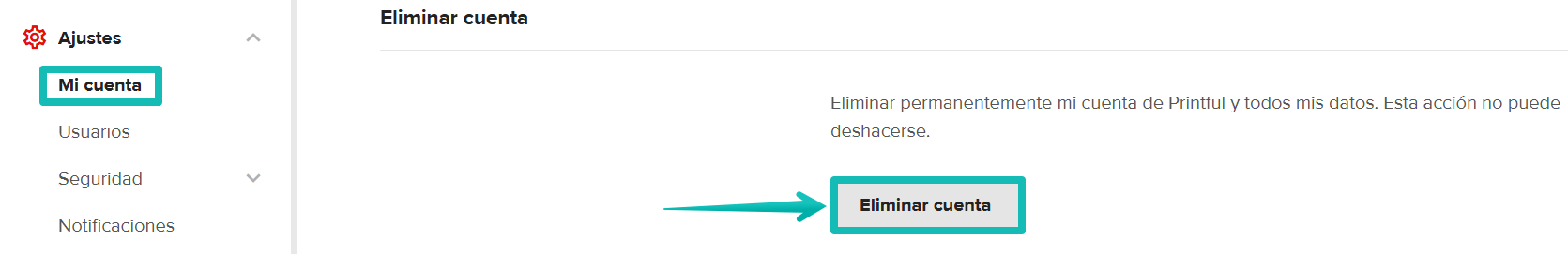 Si deseas eliminar tu cuenta de Printful de forma permanente:
