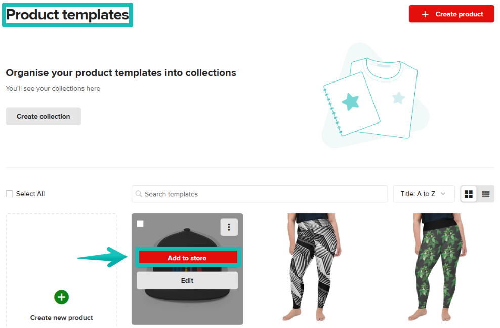 Se non vedi l’opzione per aggiungere prodotti al negozio dalla sezione Negozi, vai alla sezione I miei prodotti → Modelli di prodotto → passa il cursore sul modello di prodotto → fai clic su Pubblica.