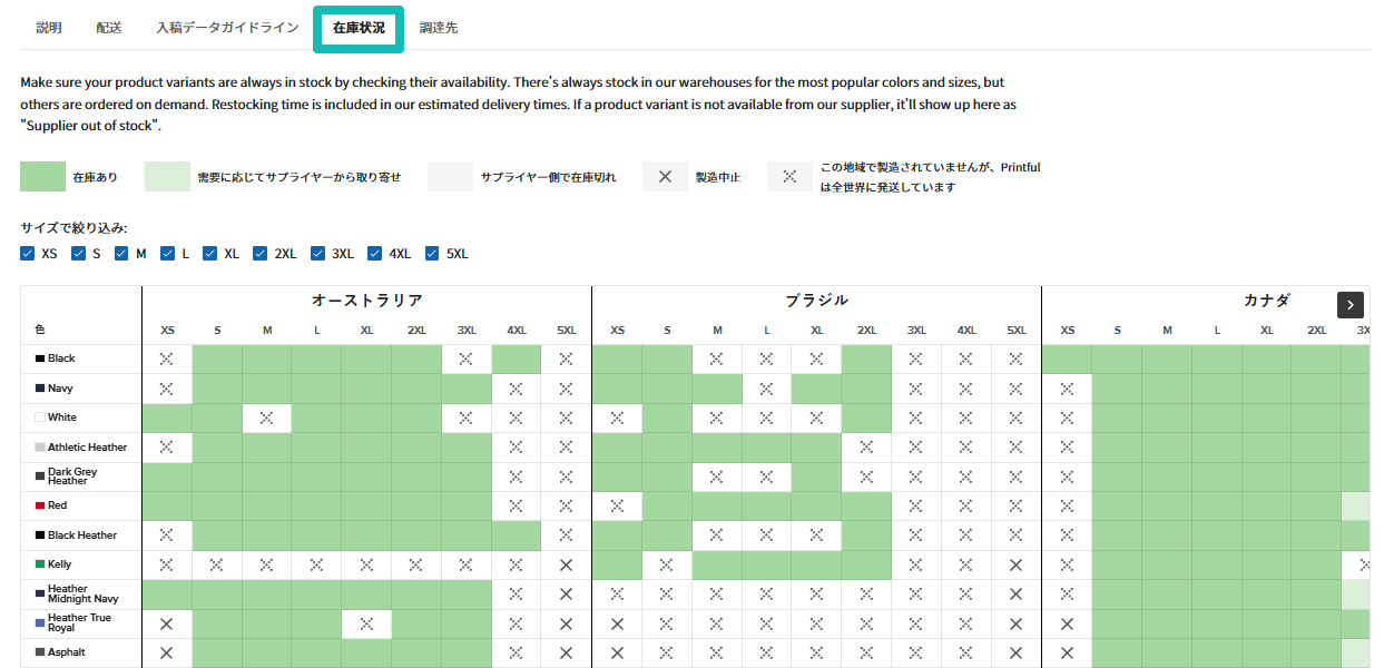 ストアに追加する前に商品が国内で注文処理できるか確認したい場合は、商品ページの 在庫タブを確認してください。